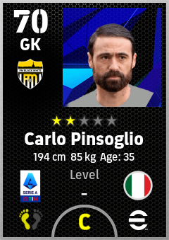 . Carlo Pinsoglio is a Goalkeeper footballer from Italy who plays for Piemonte Bn in eFootball 2026.