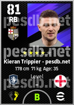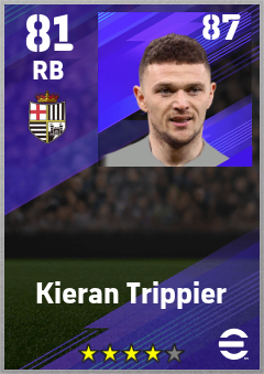 . Kieran Trippier is a Right Back footballer from England who plays for Newcastle Wb in eFootball 2026.