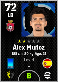 . Álex Muñoz is a Left Back footballer from Spain who plays for Almería Rb in eFootball 2026.