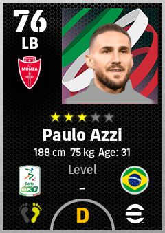 . Paulo Azzi is a Left Back footballer from Brazil who plays for Monza Rb in eFootball 2026.