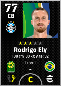 . Rodrigo Ely is a Center Back footballer from Brazil who plays for Grêmio Fbpa in eFootball 2026.