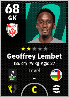 . Geoffrey Lembet is a Goalkeeper footballer from Central African Rep. who plays for As Nancy-Lorraine in eFootball 2026.