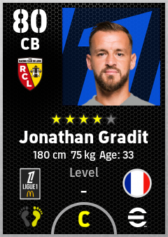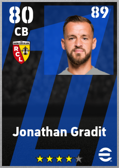 . Jonathan Gradit is a Center Back footballer from France who plays for Rc Lens in eFootball 2026.