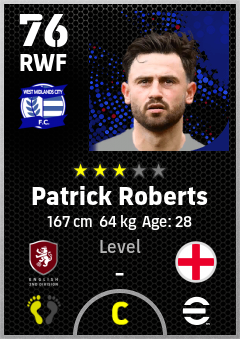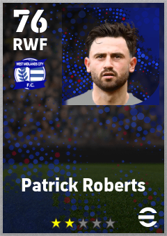 . Patrick Roberts is a Right Wing Forward footballer from England who plays for Birmingham B in eFootball 2026.