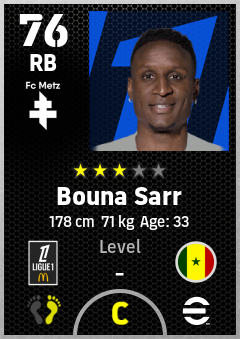 . Bouna Sarr is a Right Back footballer from Senegal who plays for Fc Metz in eFootball 2026.