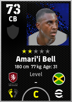 . Amari'i Bell is a Center Back footballer from Jamaica who plays for Charlton Rw in eFootball 2026.