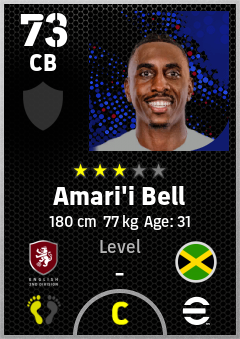 . Amari'i Bell is a Center Back footballer from Jamaica who plays for Charlton Rw in eFootball 2026.