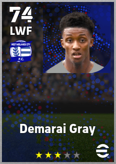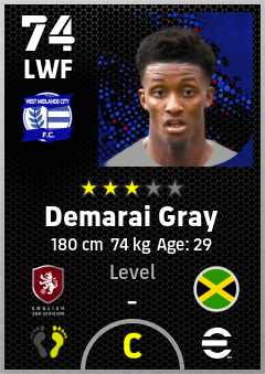 . Demarai Gray is a Left Wing Forward footballer from Jamaica who plays for Birmingham B in eFootball 2026.