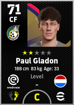. Paul Gladon is a Center Forward footballer from Netherlands who plays for Fortuna Sittard in eFootball 2026.