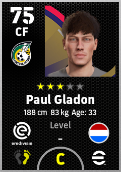 . Paul Gladon is a Center Forward footballer from Netherlands who plays for Fortuna Sittard in eFootball 2026.