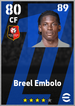 . Breel Embolo is a Center Forward footballer from Switzerland who plays for Stade Rennais Fc in eFootball 2026.