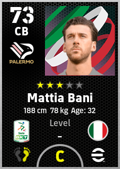 . Mattia Bani is a Center Back footballer from Italy who plays for Palermo Rn in eFootball 2026.