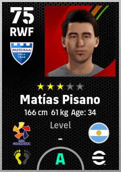 . Matías Pisano is a Right Wing Forward footballer from Argentina who plays for Pasto Raa in eFootball 2026.