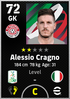 . Alessio Cragno is a Goalkeeper footballer from Italy who plays for Südtirol Br in eFootball 2026.