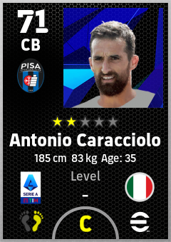 . Antonio Caracciolo is a Center Back footballer from Italy who plays for Pisa Sporting Club in eFootball 2026.
