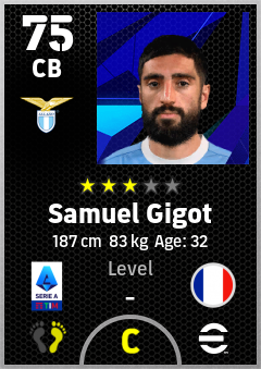 . Samuel Gigot is a Center Back footballer from France who plays for S.s. Lazio in eFootball 2026.