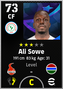 . Ali Sowe is a Center Forward footballer from The Gambia who plays for Çaykur Rizespor in eFootball 2026.