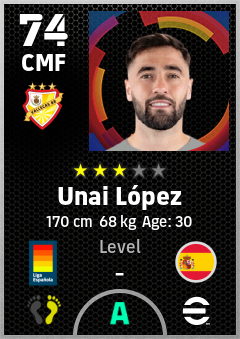 . Unai López is a Center Midfielder footballer from Spain who plays for Vallecas Br in eFootball 2026.