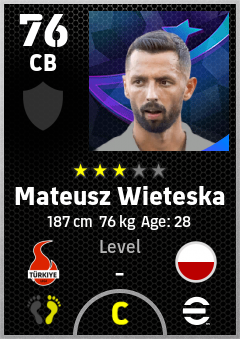 . Mateusz Wieteska is a Center Back footballer from Poland who plays for Kocaelispor in eFootball 2026.