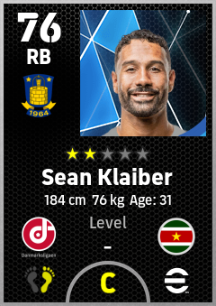 . Sean Klaiber is a Right Back footballer from Suriname who plays for Brøndby Gb in eFootball 2026.