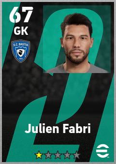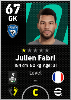 . Julien Fabri is a Goalkeeper footballer from France who plays for Sc Bastia in eFootball 2026.