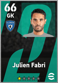 . Julien Fabri is a Goalkeeper footballer from France who plays for Sc Bastia in eFootball 2026.