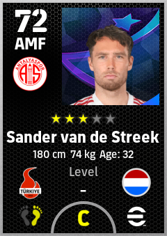 . Sander Van De Streek is a Attacking Midfielder footballer from Netherlands who plays for Antalyaspor in eFootball 2026.