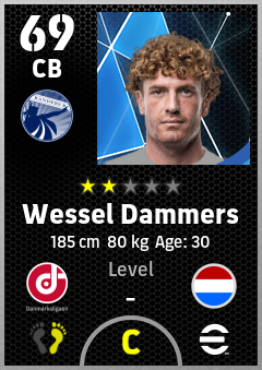 . Wessel Dammers is a Center Back footballer from Netherlands who plays for Randers B in eFootball 2026.