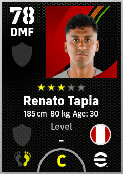 . Renato Tapia is a Defensive Midfielder footballer from Peru who plays for Free in eFootball 2026.