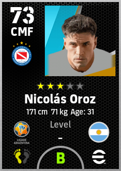 . Nicolás Oroz is a Center Midfielder footballer from Argentina who plays for La Paternal Rb in eFootball 2026.