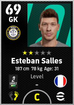 . Esteban Salles is a Goalkeeper footballer from France who plays for Pau Fc in eFootball 2026.