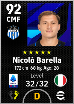 .Nicolò Barella is a Center Midfielder footballer from Italy who plays for Internazionale Milano in eFootball 2026.