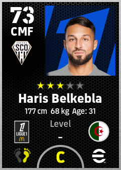 . Haris Belkebla is a Center Midfielder footballer from Algeria who plays for Angers Sco in eFootball 2026.
