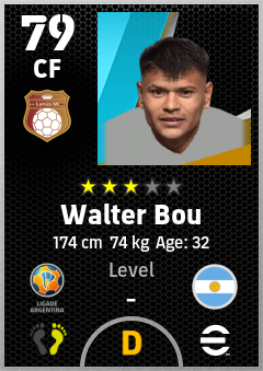 . Walter Bou is a Center Forward footballer from Argentina who plays for Lanús M in eFootball 2026.