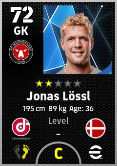 . Jonas Lössl is a Goalkeeper footballer from Denmark who plays for Midtjylland Sr in eFootball 2026.