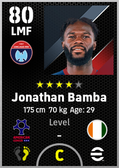 . Jonathan Bamba is a Left Midfielder footballer from Côte D'ivoire who plays for Chicago Rw in eFootball 2026.