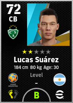 . Lucas Suárez is a Center Back footballer from Argentina who plays for Junín V in eFootball 2026.