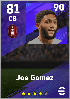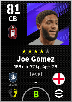 . Joe Gomez is a Center Back footballer from England who plays for Liverpool R in eFootball 2026.