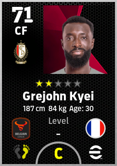 . Grejohn Kyei is a Center Forward footballer from France who plays for Liège Rw in eFootball 2026.