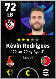 . Kévin Rodrigues is a Left Back footballer from Portugal who plays for Gaziantep Fk in eFootball 2026.