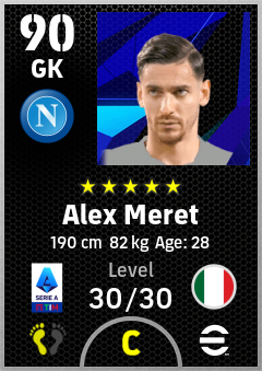 . Alex Meret is a Goalkeeper footballer from Italy who plays for Napoli A in eFootball 2026.