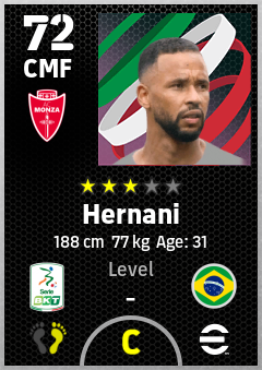 . Hernani is a Center Midfielder footballer from Brazil who plays for Monza Rb in eFootball 2026.