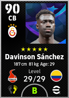 .Davinson Sánchez is a Center Back footballer from Colombia who plays for Galatasaray Sk in eFootball 2026.