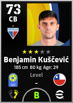 . Benjamin Kuščević is a Center Back footballer from Chile who plays for Fortaleza Avb in eFootball 2026.