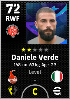 . Daniele Verde is a Right Wing Forward footballer from Italy who plays for Fatih Karagümrük Sk in eFootball 2026.