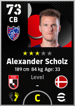 . Alexander Scholz is a Center Back footballer from Denmark who plays for Fc Tokyo in eFootball 2026.