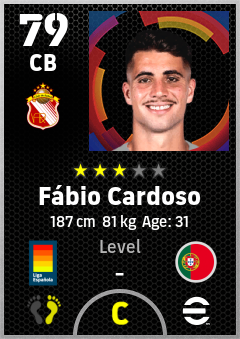 . Fábio Cardoso is a Center Back footballer from Portugal who plays for Sevilla Nervión Br in eFootball 2026.