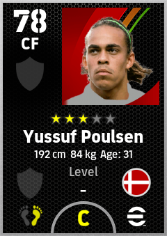 . Yussuf Poulsen is a Center Forward footballer from Denmark who plays for Free in eFootball 2026.