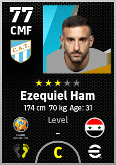 . Ezequiel Ham is a Center Midfielder footballer from Syria who plays for Tucumán Ab in eFootball 2026.