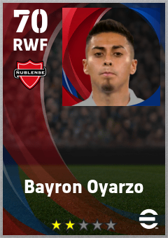 . Bayron Oyarzo is a Right Wing Forward footballer from Chile who plays for Chillán R in eFootball 2026.